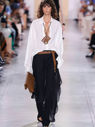 Many of the looks featured large Gold jewellery accessories - Kors is most definitely claiming Gold is the colour of S/S26! These gold pendants hung from thin strands of leather, creating an effortless ‘cool girl’ vibe.