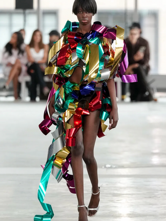Now this is high fashion! Thank god someone finally brought some fun back to the runway! We’re only on day two of NYFW, but many shows so far have played it pretty safe - muted palettes, structured silhouettes, and very little risk. But not Area.