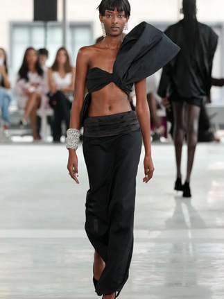 One of my favourite moments was the denim and tailored black looks. The distressed denim worked beautifully with the sleeker pieces. And can we talk about the mini skirt/jean hybrid? The tied, stuffed pant legs created this clever 3D effect — a fun twist on a basic shape. I loved the black version even more than the denim! It was very much giving a corporate fashion icon's dream.