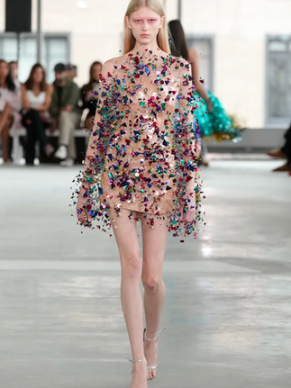 The final seven looks (shown above) of this collection? Insane (in the best way). Sequins everywhere. One model looked like a pom-pom, another like a glimmering speck of glitter, and one literally resembled a bow on a Christmas present. It was absurd, fabulous, and completely experimental — everything high fashion should dare to be.